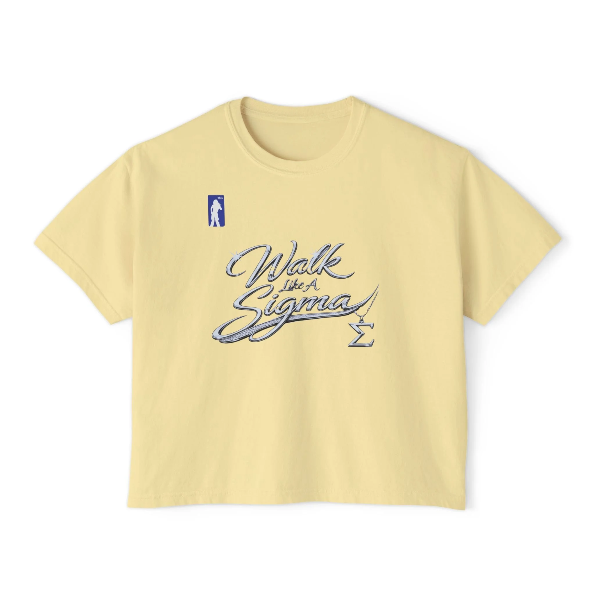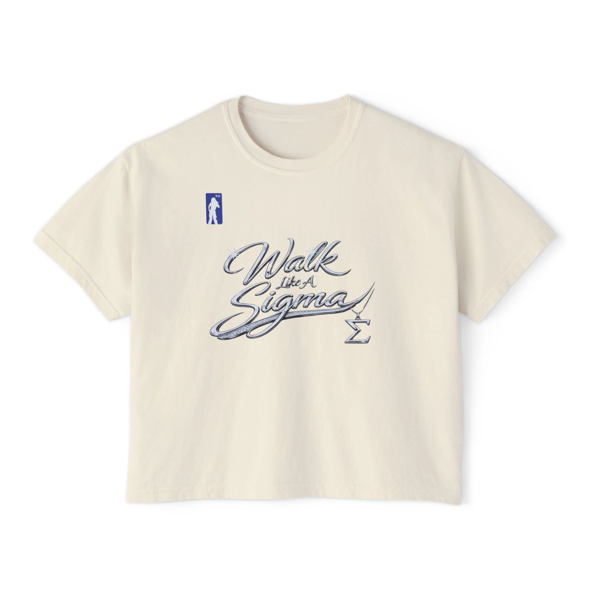 This cropped boxy tee carries a relaxed, vintage-ready attitude. The heavier ring-spun cotton feels substantial and smooth, giving the shirt a lived-in drape that flatters a laid-back wardrobe. Subtle pigment-dyed color and shoulder-to-shoulder twill keep the silhouette stable while the slightly cropped, boxy cut pairs naturally with high-waist jeans, skirts, or layered outerwear. Hand-lettered script on front and back adds a collegiate, walk-on confidence — a quiet statement for everyday moments: coffee runs, study sessions, or late-afternoon strolls with friends. Expect soft variations in shade from the pigment dye that deepen the tee’s old-school charm over time.