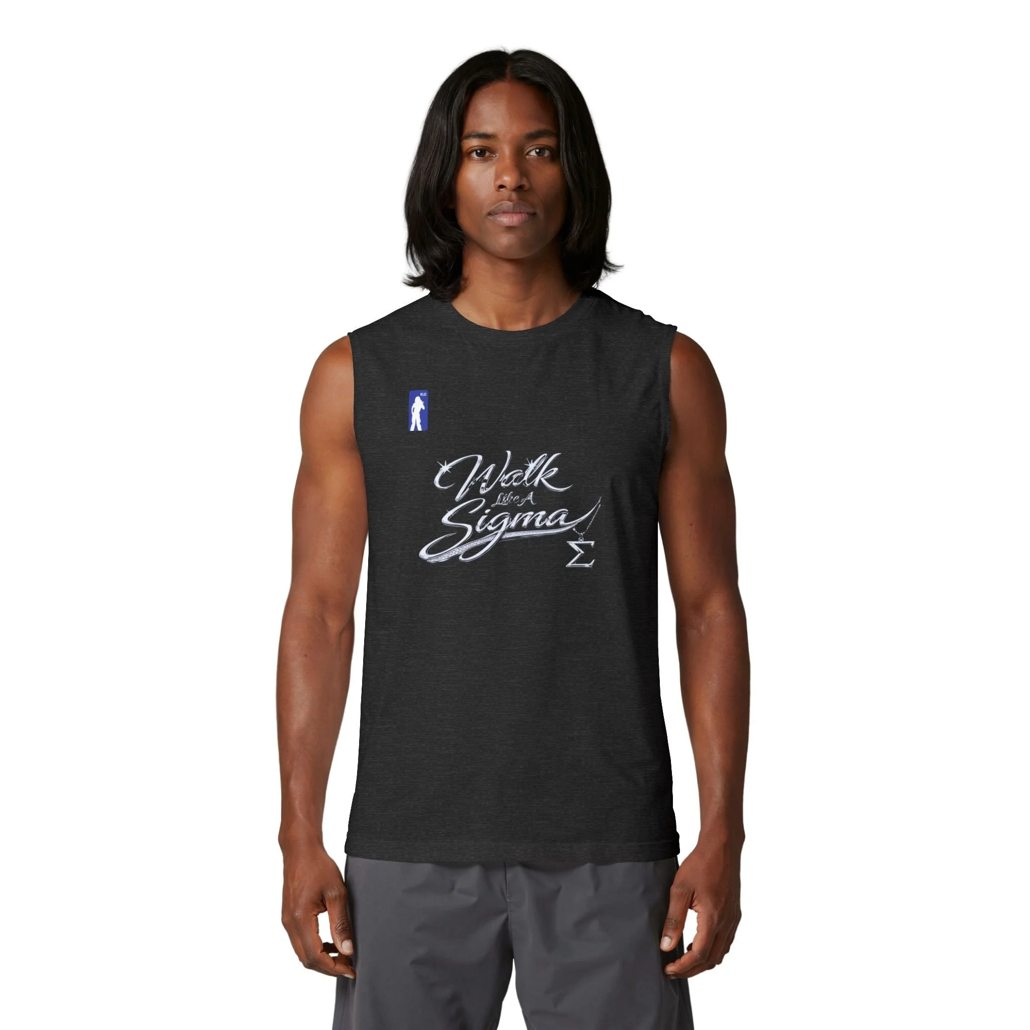 This lightweight muscle tank channels collegiate confidence with a clean, minimalist design. Soft white fabric carries hand-lettered script on the chest — “Walk with a Sigma” — and a small signature mark, while the back shows a subtle “BluPrint” script for a layered, thoughtful look. Sleeveless cuts and a retail, unisex fit let movement breathe whether you’re on campus, at the gym, or grabbing coffee with the crew. The tear-away label and pre-shrunk construction keep comfort front and center, while side seams preserve the tank’s shape wash after wash. It feels like the quiet friend that backs your stride — modest, steady, and ready for whatever day you’ve planned.